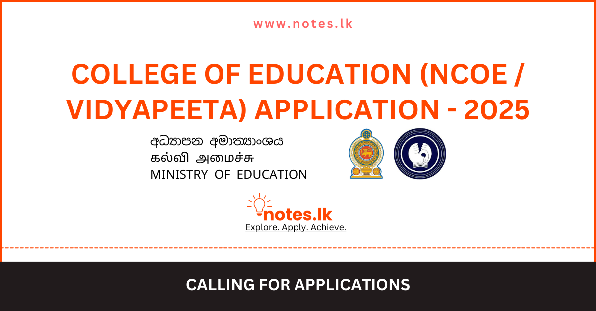 Calling Applications for Admission of Student Teachers to National Colleges of Education 2025 to follow Teaching Course Based on 2023 & 2024 G.C.E. (A/L) ResultsMinistry ...