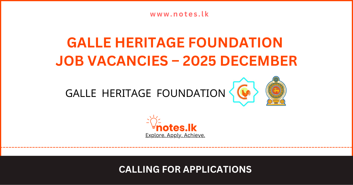 Galle Heritage Foundation Job Vacancies – 2025 December