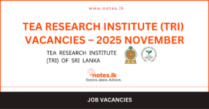 Tea Research Institute (TRI) Vacancies – 2025 November