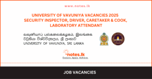 Job Vacancies at University of Vavuniya – 2025 NovemberSecurity InspectorDriverCaretaker Cum CookLaboratory Attendant Go Study ! Study anything from our ...