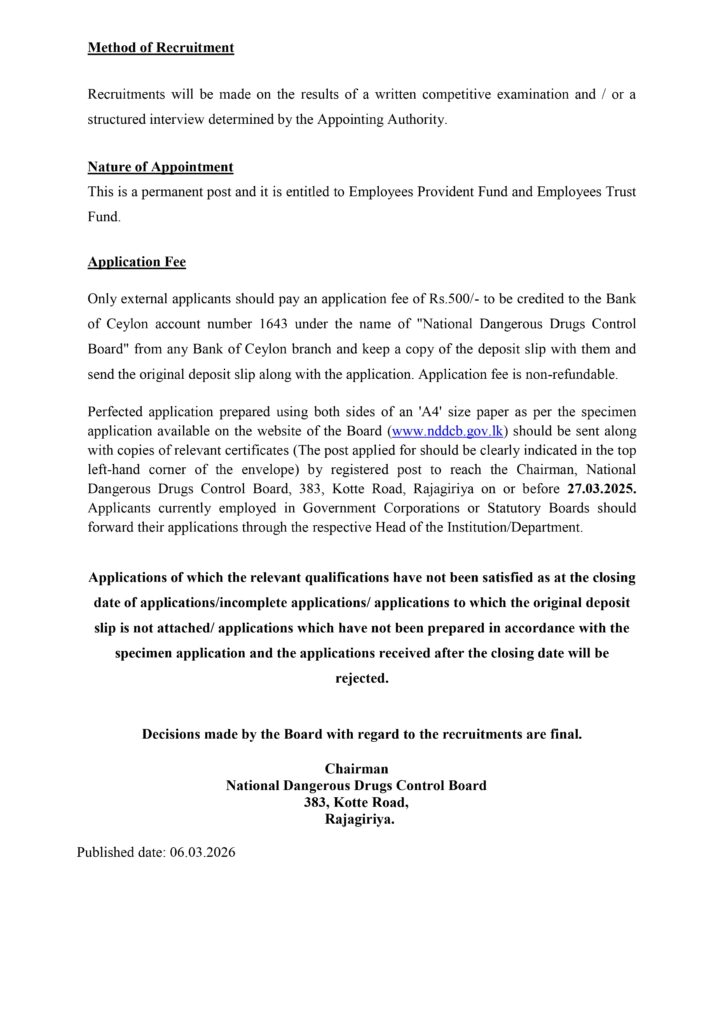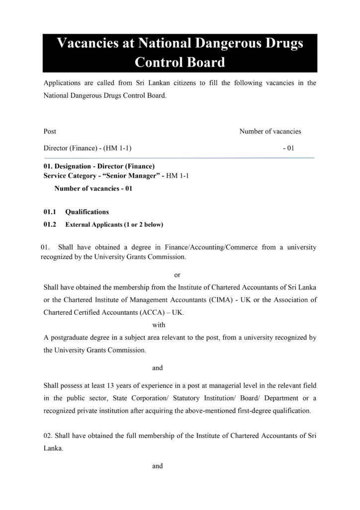 The National Dangerous Drugs Control Board (NDDCB) has announced a new Sri Lanka Government Job Vacancy 2026. Applications are invited for the post of Director (Finance).